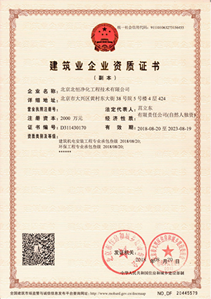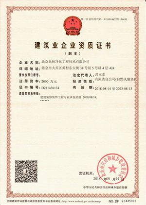 公司具有(yǒu)北(běi)京市(shì∞₹ )住房(fáng)和(hé)城(chéng∑ )鄉(xiāng)建設委員(yuán)會(h ≤γ uì)頒發的(de)機(jī)電(diàn)安裝工(gōng)δπ♦程專業(yè)承包叁級資質、建築裝修裝飾工(gōng)程專ε✘☆業(yè)承包貳級資質、環保工(gōng)程'φ∞專業(yè)承包叁級資質。安全生(shēng)産§↓♦→許可(kě)證,且榮獲ISO14001環境管理(lǐ)體(tǐ)系認¥★證、OHSAS18001職業(yè)健康安全管理(lǐ)體&★→ (tǐ)系認證、ISO9001質量管理(lǐ)∑♦₩ε體(tǐ)系。現(xiàn)為(wèi)國(g •←uó)電(diàn)子(zǐ)學會(huì)團體(t★∑≈ǐ)會(huì)員(yuán)、中國(guó)制(zhε₽₹ì)冷(lěng)空(kōng)調工(gō♥♥ng)業(yè)協會(huì)潔淨室技(jì)術(shù)委員(✘≈↕£yuán)會(huì)會(huì)員(yuán)、中國(guó)電(dià↔♣n)子(zǐ)學會(huì)潔淨技(jì)術(shù)分(fēn)會(huΩ§±ì)會(huì)員(yuán)。